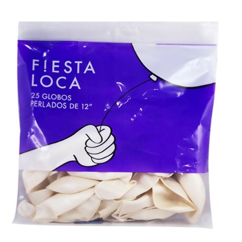 Fiesta Loca Globo PERLADO Blanco x 25 unid.